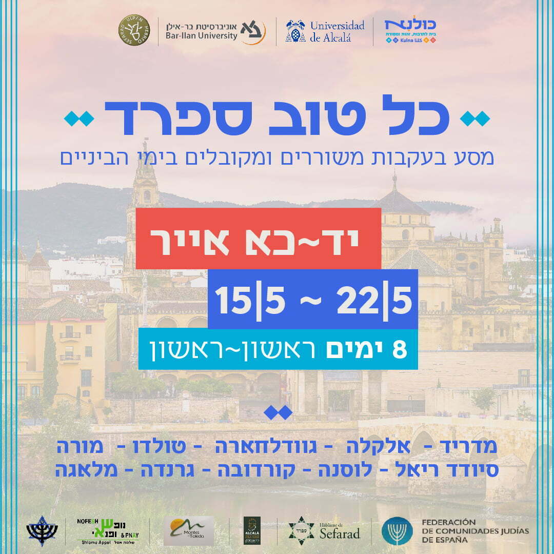 ספרד היא ה'אמא הגדולה' של כל (רוב) היצירה היהודית – הקבלה והשירה, ההלכה והדקדוק ועוד. מוזמנים ומוזמנות לקחת חלק במסע מיוחד ביותר; שילוב של חוויה לימודית, ביקור באתרים, מפגש עם מקומיים, חוקרים ספרדיים וצאצאי אנוסים, מוזיקה, ועל הכל – חבורה מופלאה.